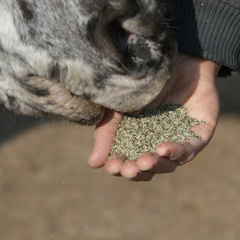 Hanfschrot kann sowohl als täglicher Futterzusatz, als auch in Form einer Kur verwendet werden, wobei diese Kur mindestens 10 bis 12 Wochen durchgeführt werden sollte. Unser Hanfschrot kann auf verschiedene Weisen in die Fütterung deiner Pferde integriert werden. Es kann einfach dem Kraftfutter beigemengt oder als schmackhafte Zugabe zum Müsli oder Mash verwendet werden. Durch die feine Konsistenz lässt es sich problemlos mit anderen Futtermitteln vermischen und wird von den Pferden gerne akzeptiert.
